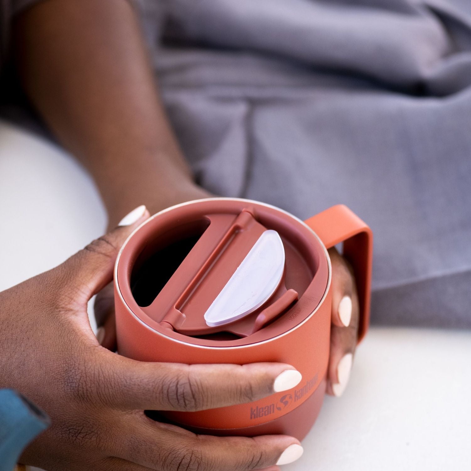 Designed with ergonomic contours and a nature-inspired tonal color palette, the Rise Mug is built with certified 90% post-consumer recycled 18/8 stainless steel, award-winning Climate Lock vacuum insulation and our chip-resistant Klean Coat finish for caffeinating indoors or out. Rise Mug comes with our new splash- and spill-proof Flip Lid and an impact-resistant base cap for added durability and stability.